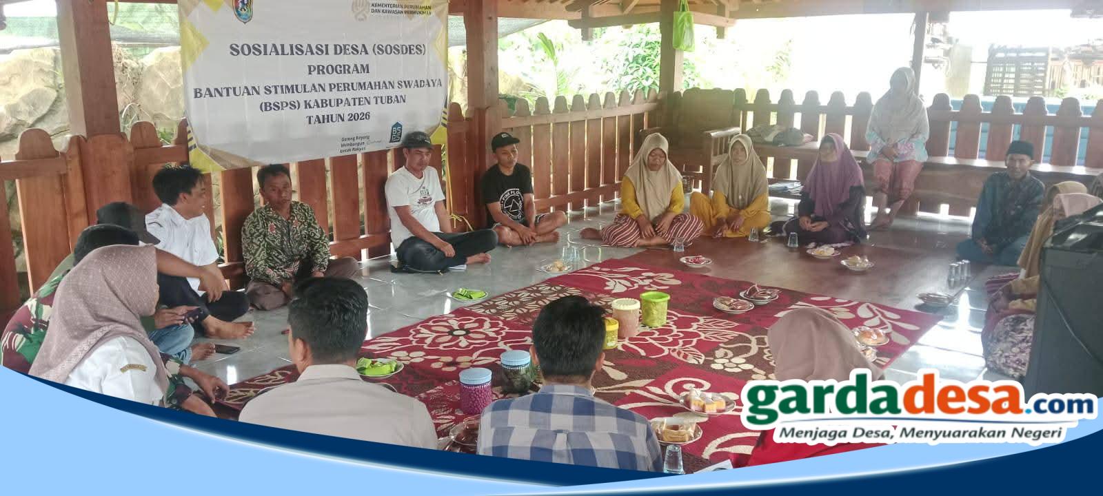 gardadesa.com, Tuban – Pemerintah Desa Ngepon menggelar kegiatan pendampingan Sosialisasi Desa (SOSDES) terkait Program Bantuan Stimulan Perumahan Swadaya (BSPS) Kabupaten Tuban Tahun 2026, Rabu (08/04/2026). Kegiatan tersebut berlangsung di kediaman Kepala Desa Ngepon, Mohammad Ali Mansyur, dan diikuti oleh sejumlah unsur terkait serta warga calon penerima manfaat.