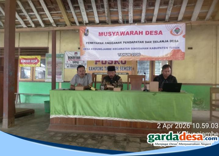 gardadesa.com, Tuban – Pemerintah Desa Kedungjambe, Kecamatan Singgahan, Kabupaten Tuban, resmi menetapkan Anggaran Pendapatan dan Belanja Desa (APBDes) Tahun 2026 melalui forum Musyawarah Desa (Musdes) yang digelar di balai desa setempat, Kamis (2/4/2026).