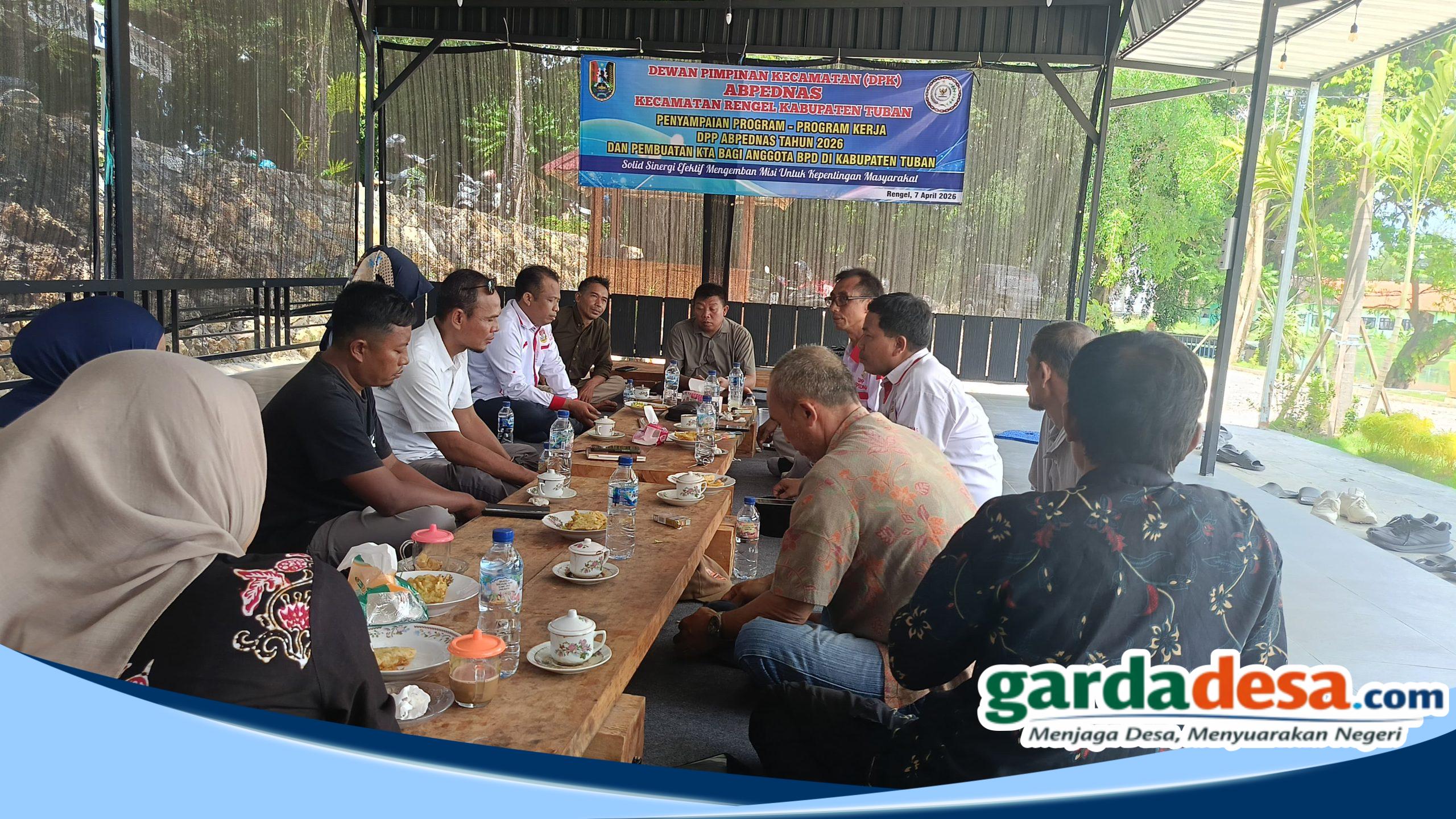 gardadesa.com, Tuban – Dewan Pimpinan Kecamatan (DPK) Asosiasi Badan Permusyawaratan Desa Nasional (ABPEDNAS) Kecamatan Rengel, Kabupaten Tuban, menegaskan komitmennya dalam memperkuat peran kelembagaan Badan Permusyawaratan Desa (BPD) melalui kegiatan penyampaian program kerja Dewan Pimpinan Pusat (DPP) ABPEDNAS Tahun 2026. Kegiatan tersebut dilaksanakan di Cafe Sendang Mberon, Rengel, serta dirangkai dengan fasilitasi pembuatan Kartu Tanda Anggota (KTA) bagi anggota BPD yang tergabung dalam ABPEDNAS se-Kabupaten Tuban, Selasa (7/4/2026).